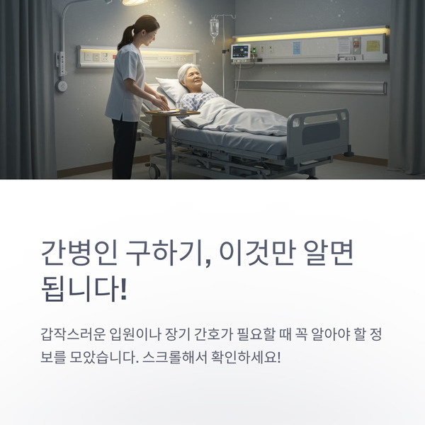 정부의 지원정책도 계속 확대되고 있으니, 병원+지자체+온라인 검색을 병행해서 가장 효율적인 간병 방법을 선택해보세요.
