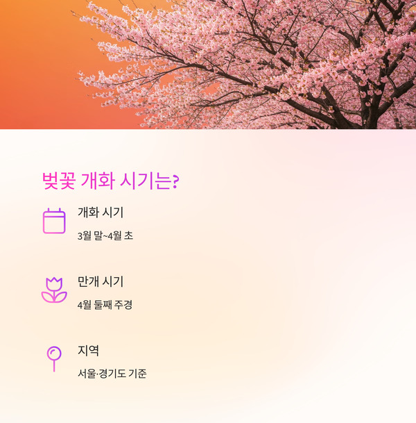 2025.03.22 - [분류 전체보기] - 2025 벚꽃개화시기 총정리 ( 지역별 개화일 & 만개일 한눈에 보기)