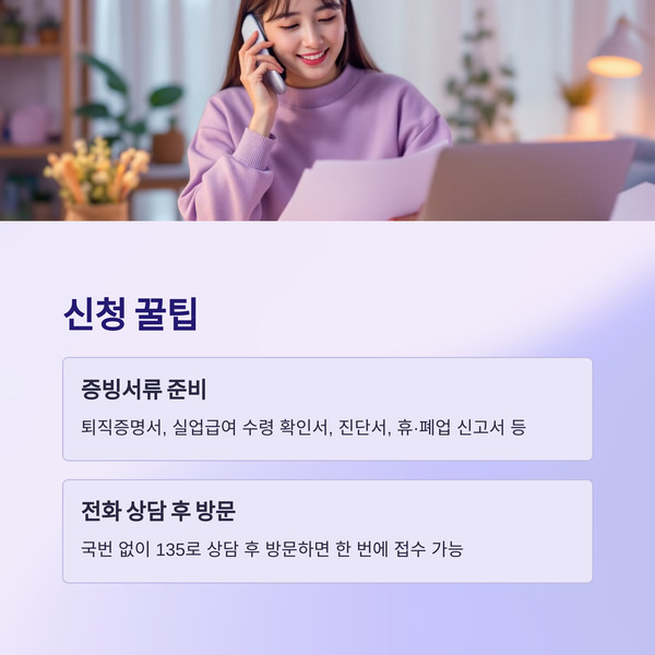 예: 퇴직증명서, 실업급여 수령 확인서, 진단서, 휴·폐업 신고서 등 - 전화 상담 후 직접 방문하는 것이 가장 빠르고 정확합니다.