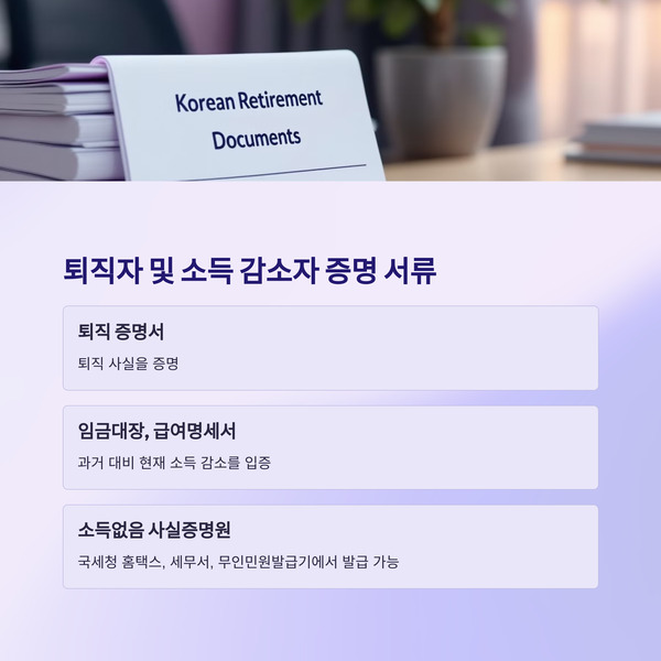 | 기타 증빙 | 의료비 지출 영수증, 재산세 납부 영수증 등 | 상황에 따라 추가 요청될 수 있는 서류 |