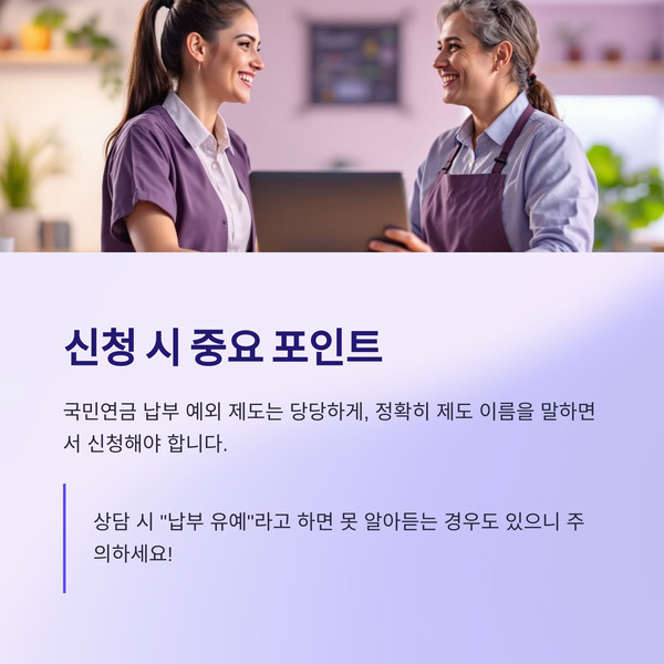 → 국민연금 납부 예외 제도는 당당하게, 정확히 제도 이름을 말하면서 신청해야 합니다.