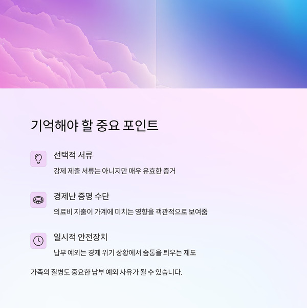 납부 예외 제도는 단순히 연금 납부를 멈추는 것이 아니라, 위기 상황에서 숨통을 틔워주는 안전장치입니다.