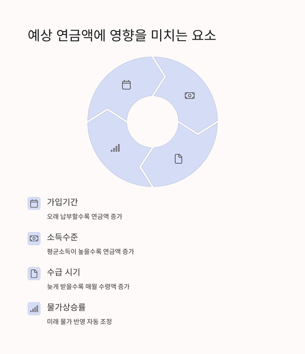 📊 국민연금 예상 수령액 계산기 (간단형)예상 월 납입금액과 가입 연수를 입력해 주세요.월 납입 보험료 (원)가입 기간 (년)예상 연금액 계산 📈 고급 국민연금 예상 수령액 계산기월 납입