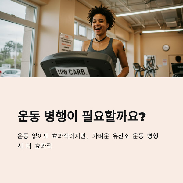 A. 운동 없이도 체지방 감소에 효과는 있지만, 가벼운 유산소 운동 병행 시 더 효과적입니다.
