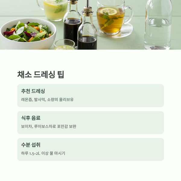 - 생채소는 드레싱 대신 레몬즙, 발사믹, 소량의 올리브유 추천