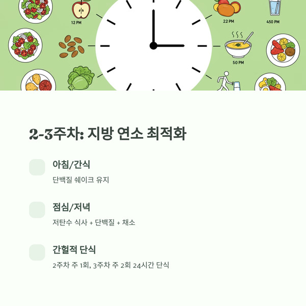 ✅ 2~3주차: 지방 연소 최적화 + 간헐적 단식 병행