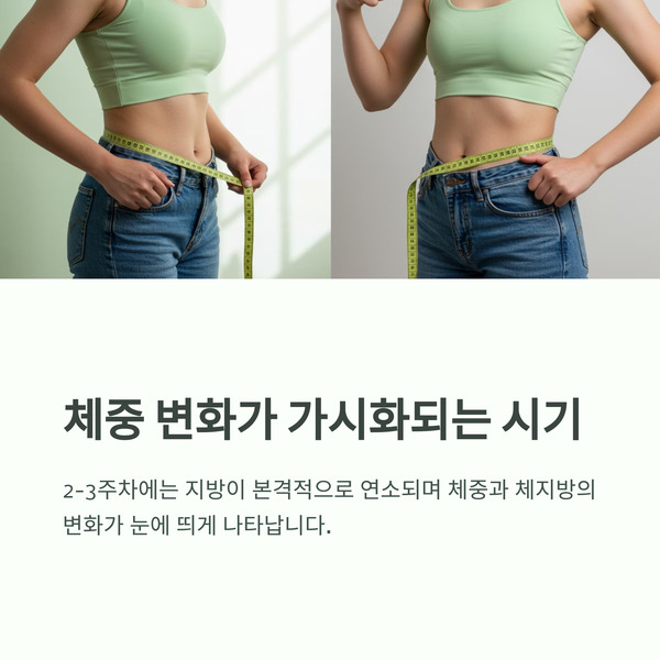 👉 지방이 본격적으로 연소되며, 체중·체지방 변화가 가시화됩니다.