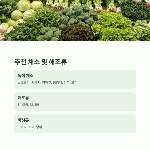채소류 | 브로콜리, 시금치, 양배추, 청경채, 상추, 오이 등 |