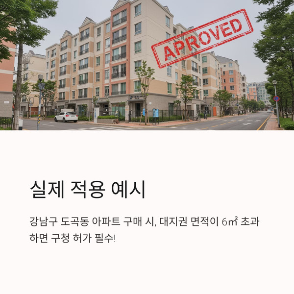 그 아파트의 ‘대지권 면적’이 6㎡를 넘는다면 무조건 구청 허가를 받아야 매매가 가능합니다.
