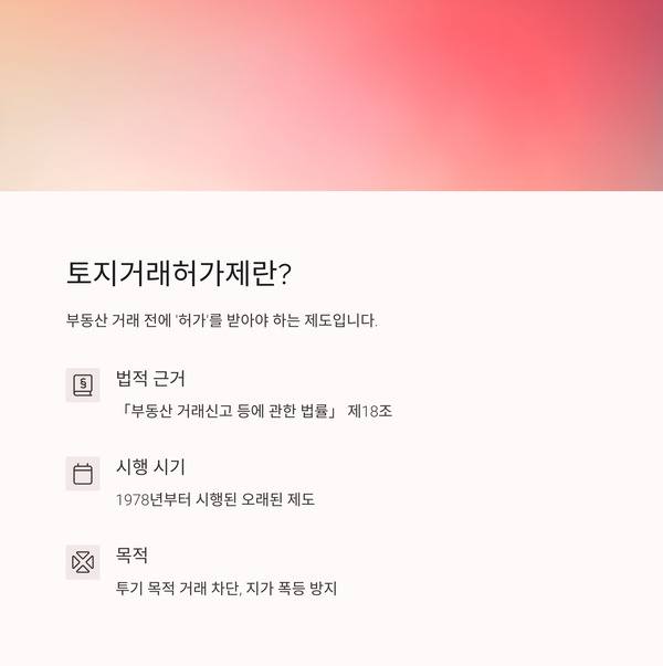 투기 목적의 부동산 거래를 차단하고, 지가(땅값) 폭등을 막기 위해 1978년부터 시행된 제도예요.