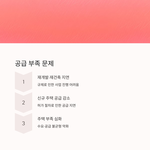 - 공급 차질: 재개발·재건축 지연으로 공급 부족 심화