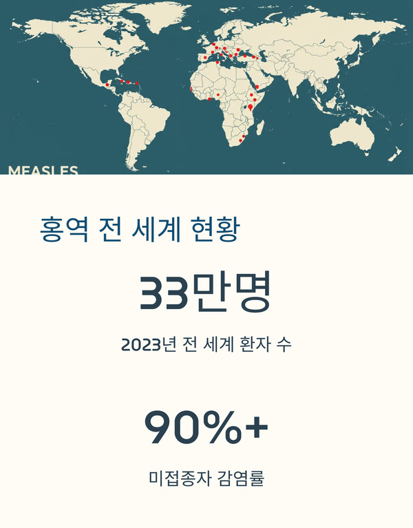 최근 전 세계적으로 **홍역(Measles)**이 급속히 확산되고 있습니다.