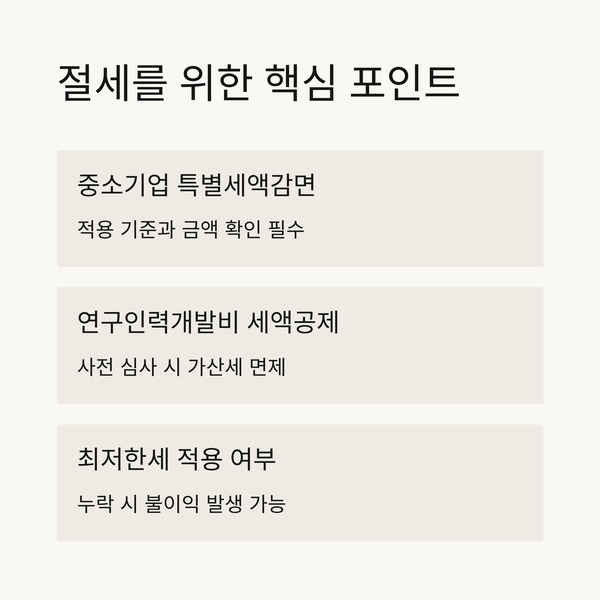 💸 중소기업 세액감면, 연구개발비, 최저한세 등 확인